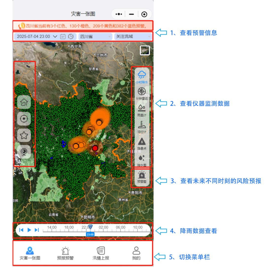 小程序具备全域覆盖优势,将全省划分为14000多个小流域,结合地形、降雨、地质等多维度数据生成预警阈值。系统集成气象、自然资源等多部门数据,依托成都超算中心实现灾害演进高效推演。用户可通过微信一键访问,支持24小时、12小时、2小时滚动预警,并通过短信、广播等多渠道推送至一线人员。
